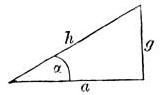 dargestellt, in welchem ein spitzer Winkel mit α, die Hypotenuse mit h, die dem Winkel α anliegende Kathete mit a, die ihm gegenüberliegende mit g