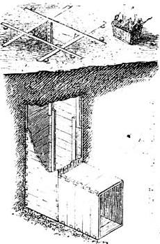Schmalseite (Schwelle) nach unten, einer dicht neben den andern gesetzt und bilden so einen Gang von 1 m Höhe und