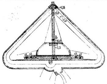Halbredoute, neuere Dreiecksform (s. vorstehende Figur). Neben der Infanterie (halbe Kompagnien) erhalten sie meist nur Schnellfeuergeschütze (in