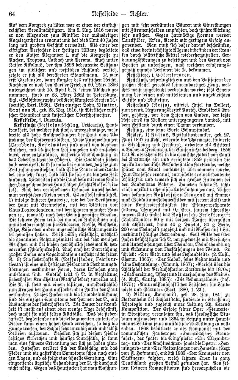Schlagworte auf dieser Seite: Nesselseide; Nesselsucht; Nesseltiere; Nesseltuch; Nesserland; Nessing; Neßler