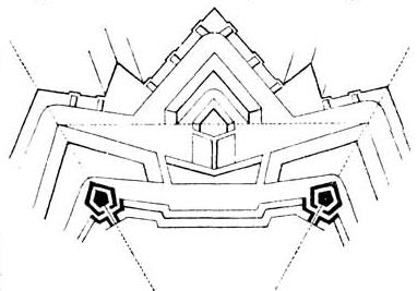 Die dritte Manier (nach dieser ist nur Neu-Breisach erbaut 1697) unterscheidet sich von der zweiten hauptsächlich dadurch, daß die langen Polygonseiten nach Art bastionierter Fronten gebrochen und mit kurzen kasemattierten Flanken versehen sind. Außerdem sind in dieser Manier die Bollwerkstürme, Bastione, Raveline und Ravelinreduits größer, das Commandement des Hauptwalles ist behufs besserer Bestreichung des gedeckten Weges verringert und das Revétement, bis zum Cordon gedeckt, zum Teil als halbe, nicht völlig sturmfreie Futtermauer aufgeführt. (Fig. 3.)