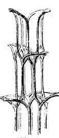 Knoten oder in der Nähe derselben, d. h. an den Stellen, wo die Blätter ansetzen, sehr verschiedenartige S-förmige,