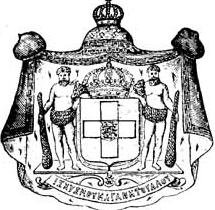 Königskrone ruht, ist der griech. Erlöserorden an weißgerändertem hellblauem Band gehängt. Unter dem Schild trägt ein