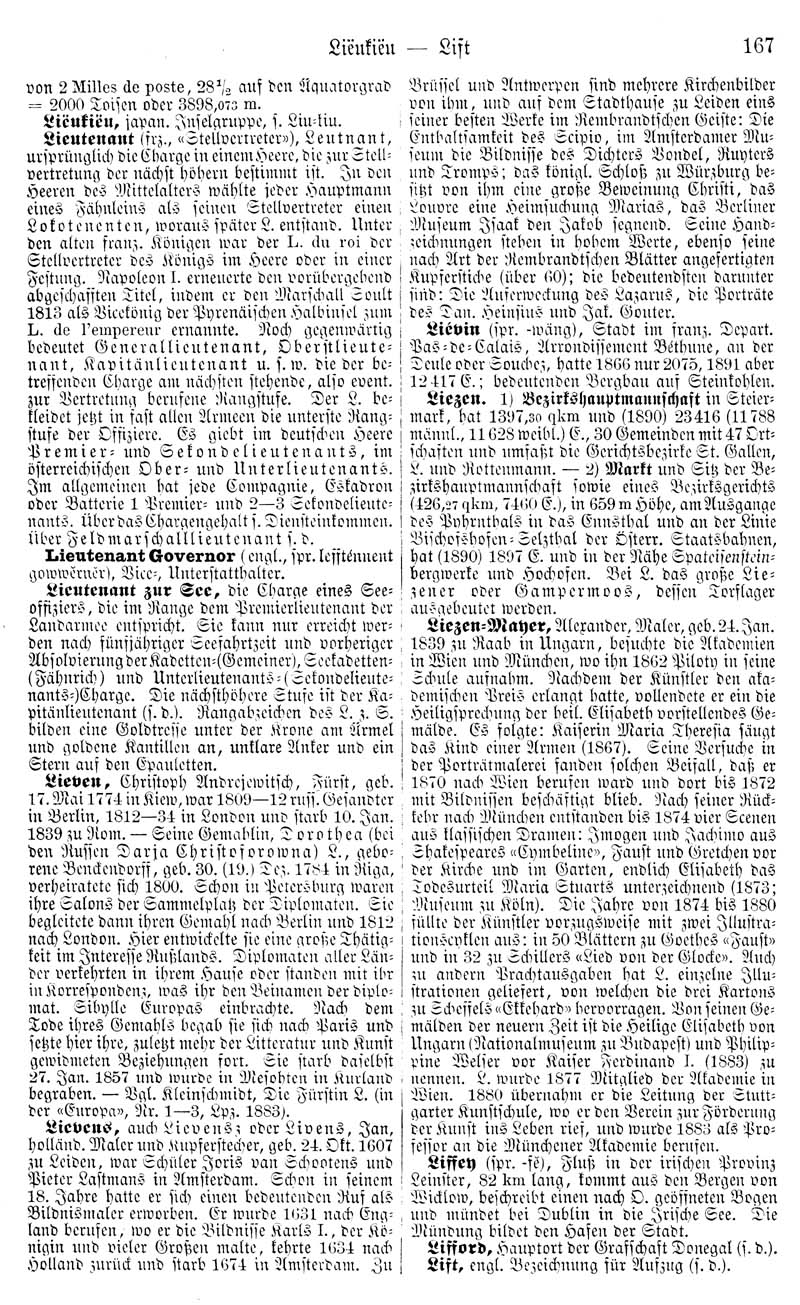 Schlagworte auf dieser Seite: Liëukiëu; Lieutenant; Lieutenant Governor; Lieutenant zur See; Lieven; Lievens; Liévin; Liezen; Liezen-Mayer; Liffey; Lifford; Lift