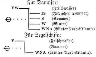 *Tiefladelinie. Die jetzigen Marken für die (englische) T. sind in folgender Weise eingeteilt: